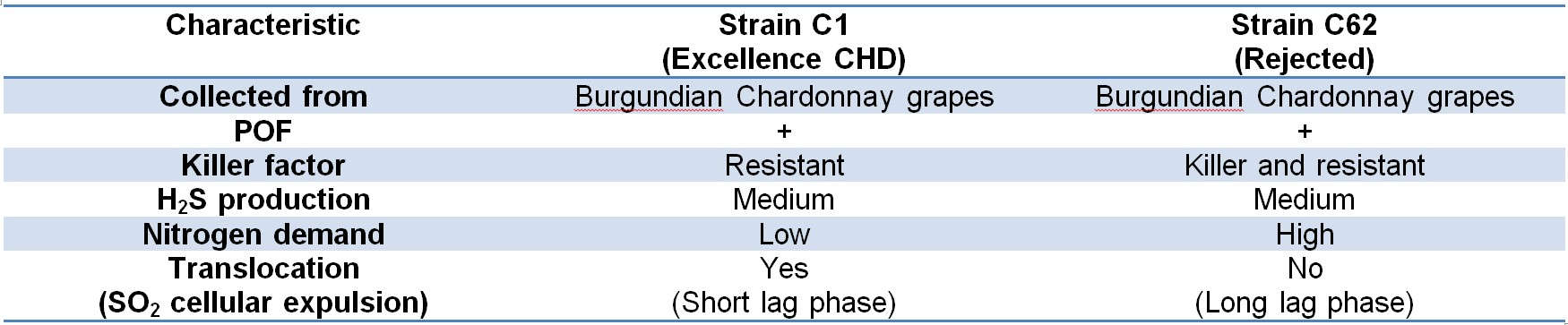 Table 1. The main characteristics of strains C1 and C62, the final candidates for winery-scale trials and subsequent commercialisation.